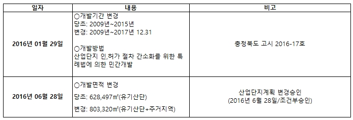 - 2016년 7월~8월 중 조건부 조치계획 심의결과 반영된 산업단지계획 (변경) 승인에 따른 최종공시 예정(충청북도)